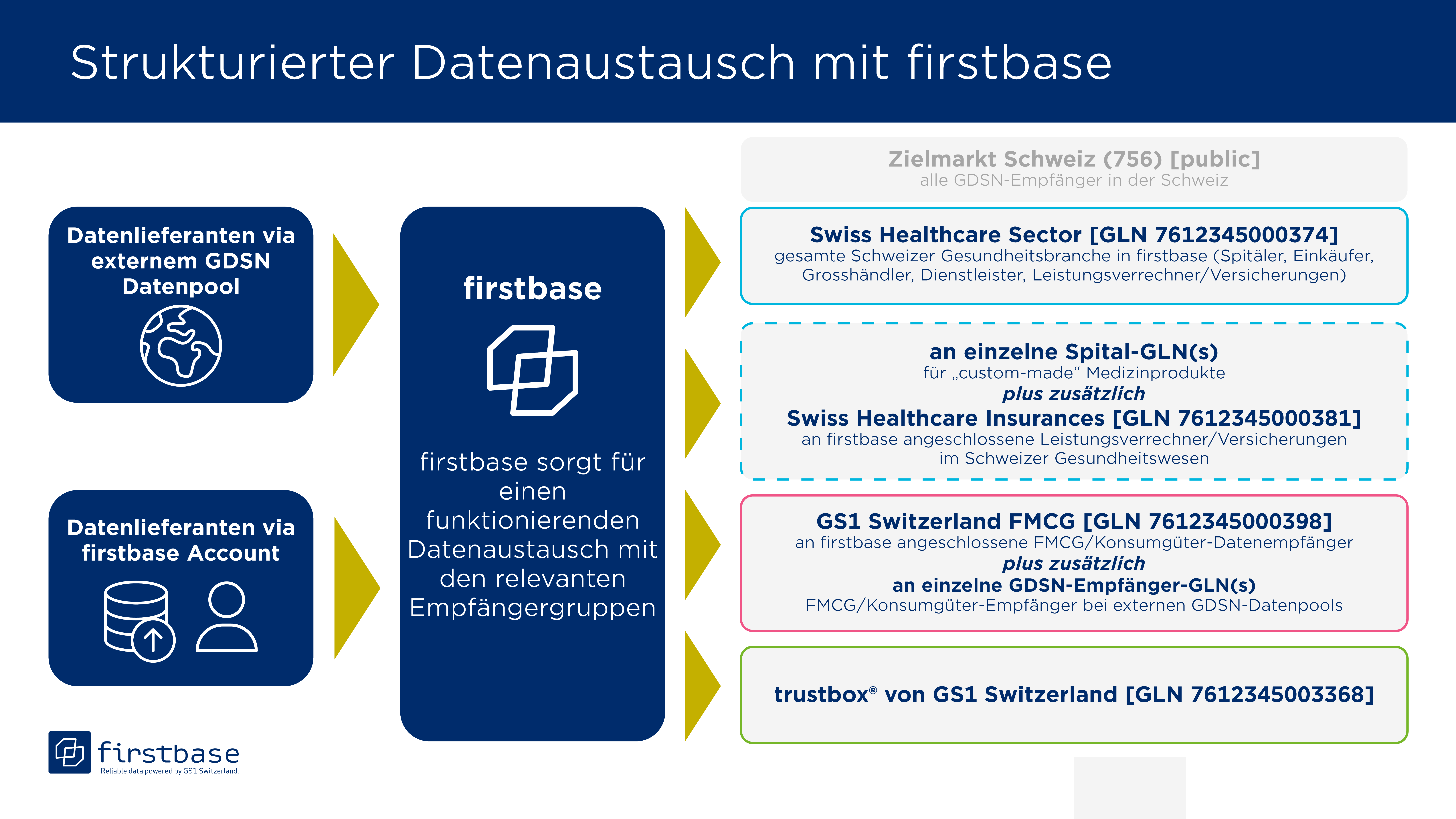 GLN 7612345000398 - GS1 Switzerland FMCG: bündelt alle FMCG-Empfänger in firstbase